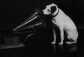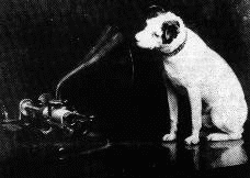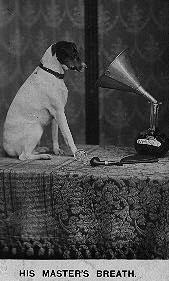At Francis Barraud's photographic studio, Nipper would listen attentively to the old phonograph. One day it occurred to Barraud that the dog might be waiting to hear his master's voice. This inspired him to paint the oil (1895) of Nipper and the gramophone, which is titled appropriately "His Master's Voice."
